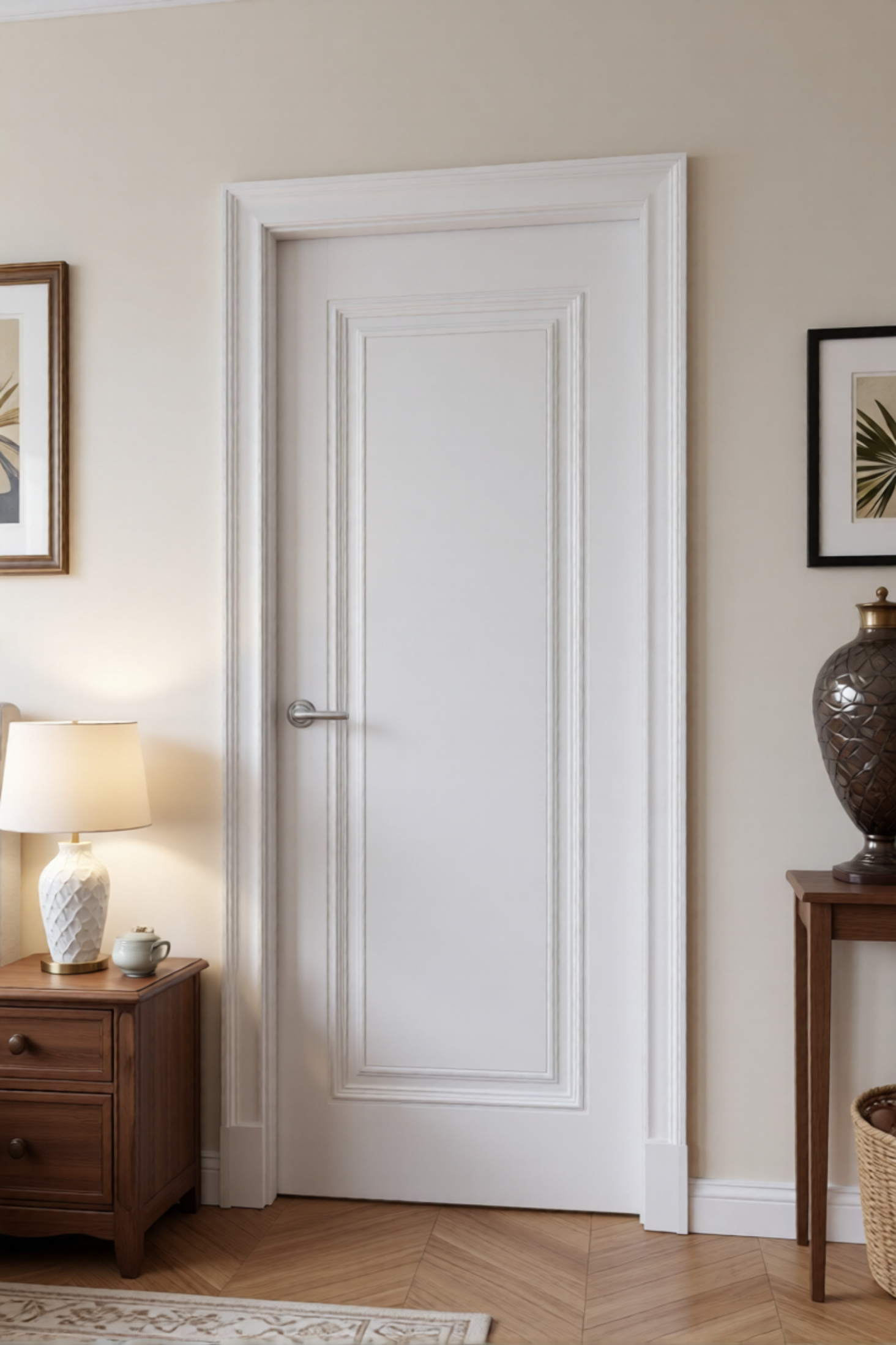 Дверь выполнена в щитовой классической конструкции, что делает её идеальной для интерьеров в стиле **неоклассика, классический, прованс, английский стиль и другие традиционные направления**.