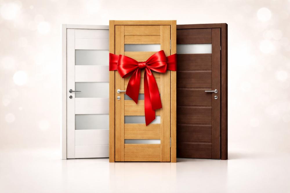 Воспользуйтесь выгодным предложением на межкомнатные двери: при покупке двух дверных полотен — третье полотно в подарок.